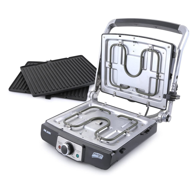 - Completely detachable and washable non-stick surface grilling plates.